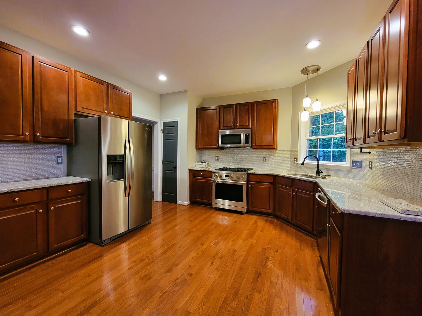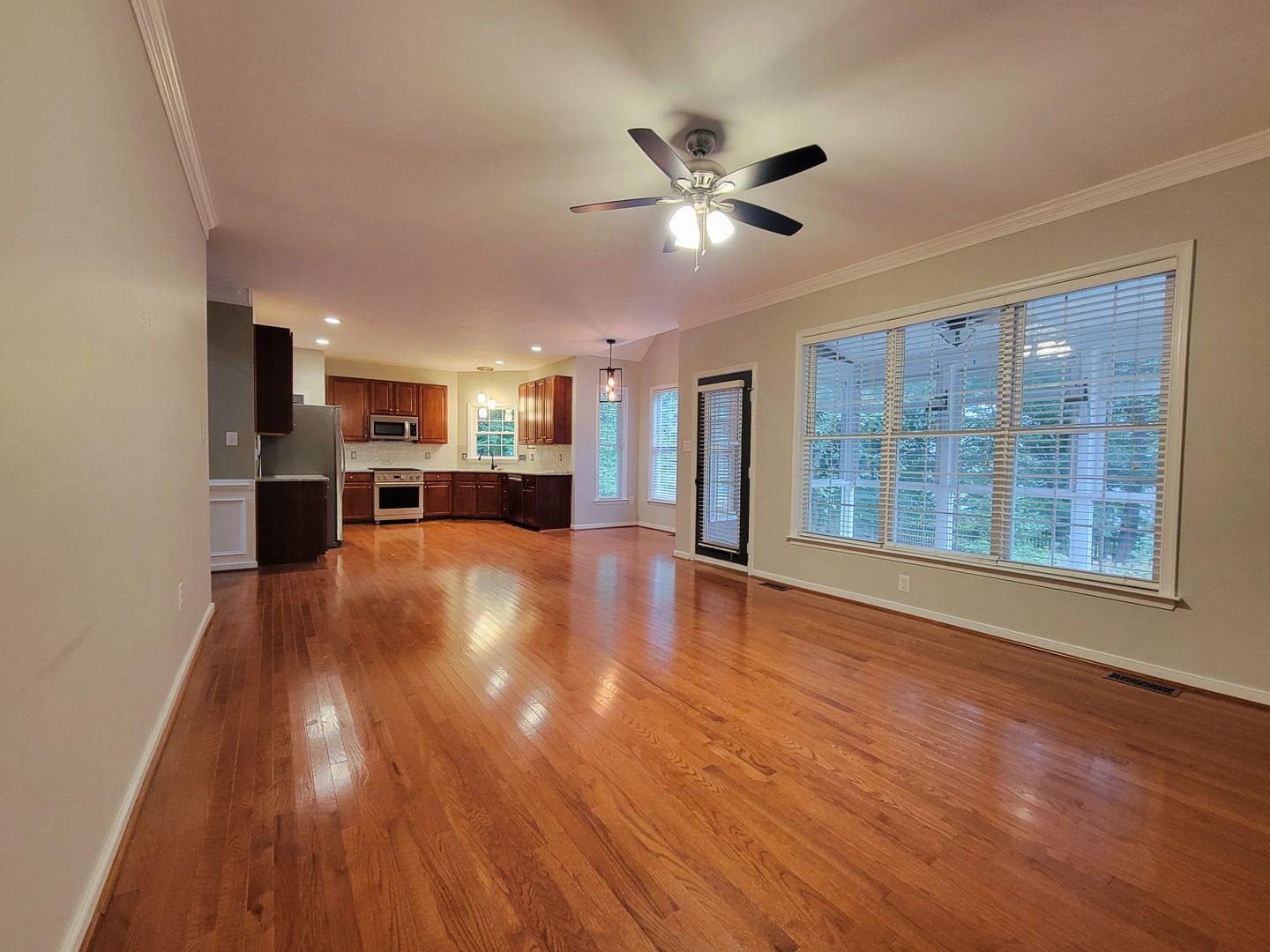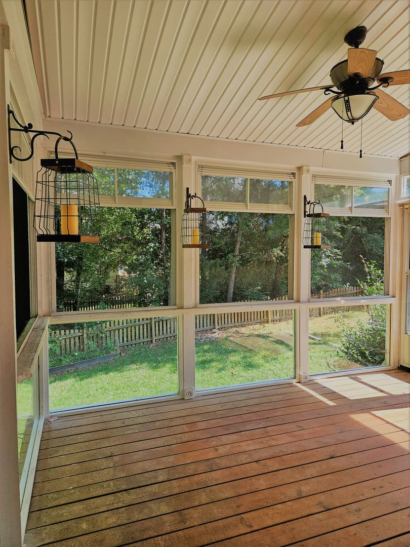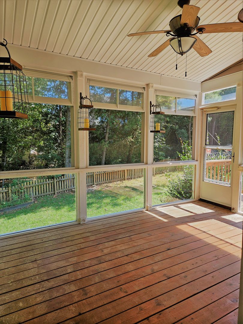Large contemporary in Birkdale Subdivision with finished 3rd floor media/game room. House features include extensive hardwood floors, granite countertops, recessed lighting, extensive trim and molding, ceiling fans, renovated bathroom, large sun room/screened in porch, side load 2 car garage with automatic garage door opener, and a fenced in back yard.