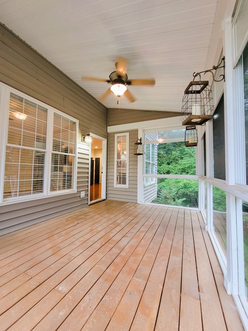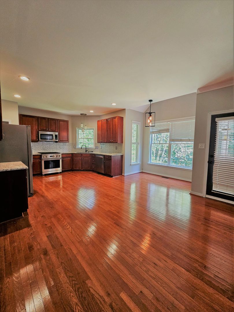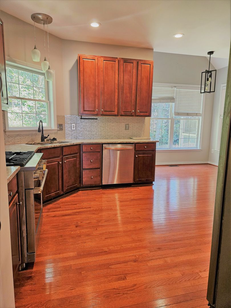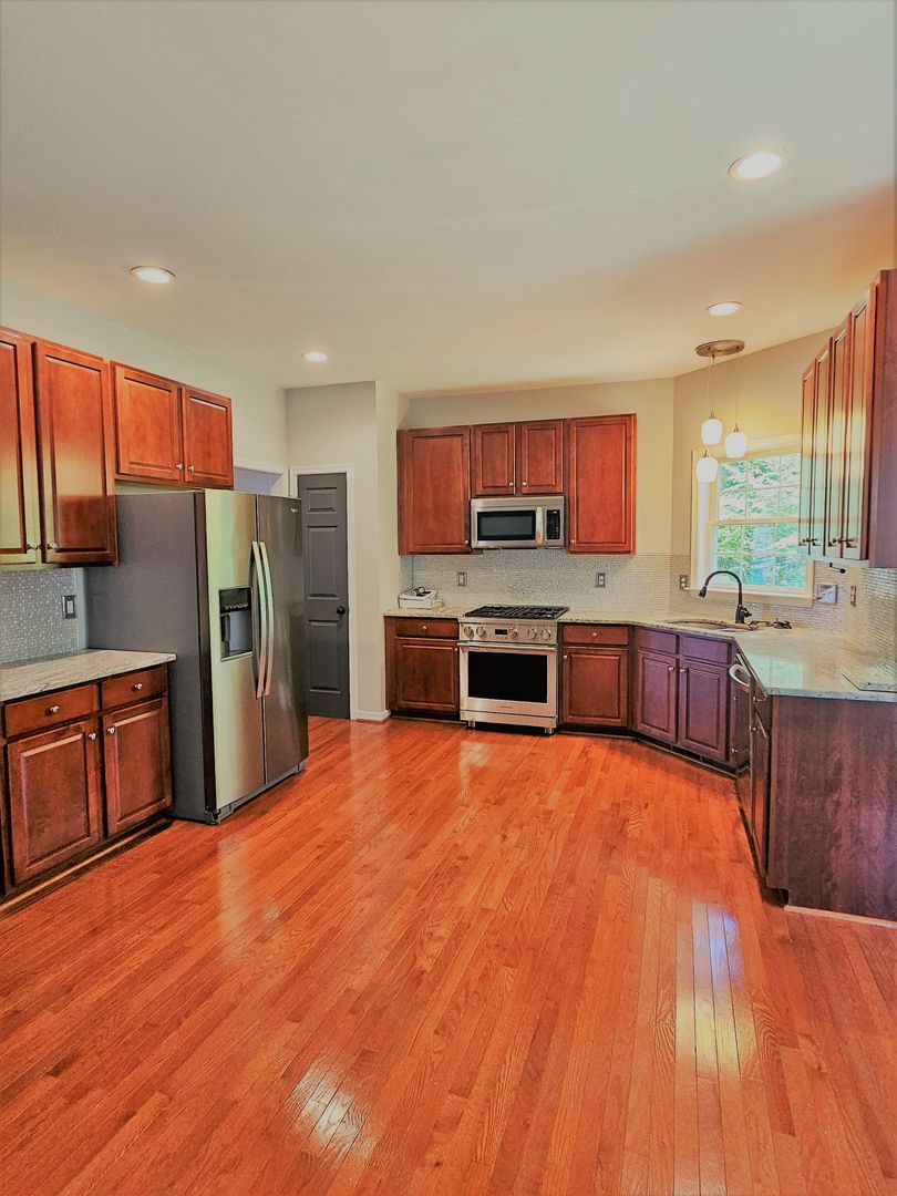 Large contemporary in Birkdale Subdivision with finished 3rd floor media/game room. House features include extensive hardwood floors, granite countertops, recessed lighting, extensive trim and molding, ceiling fans, renovated bathroom, large sun room/screened in porch, side load 2 car garage with automatic garage door opener, and a fenced in back yard.