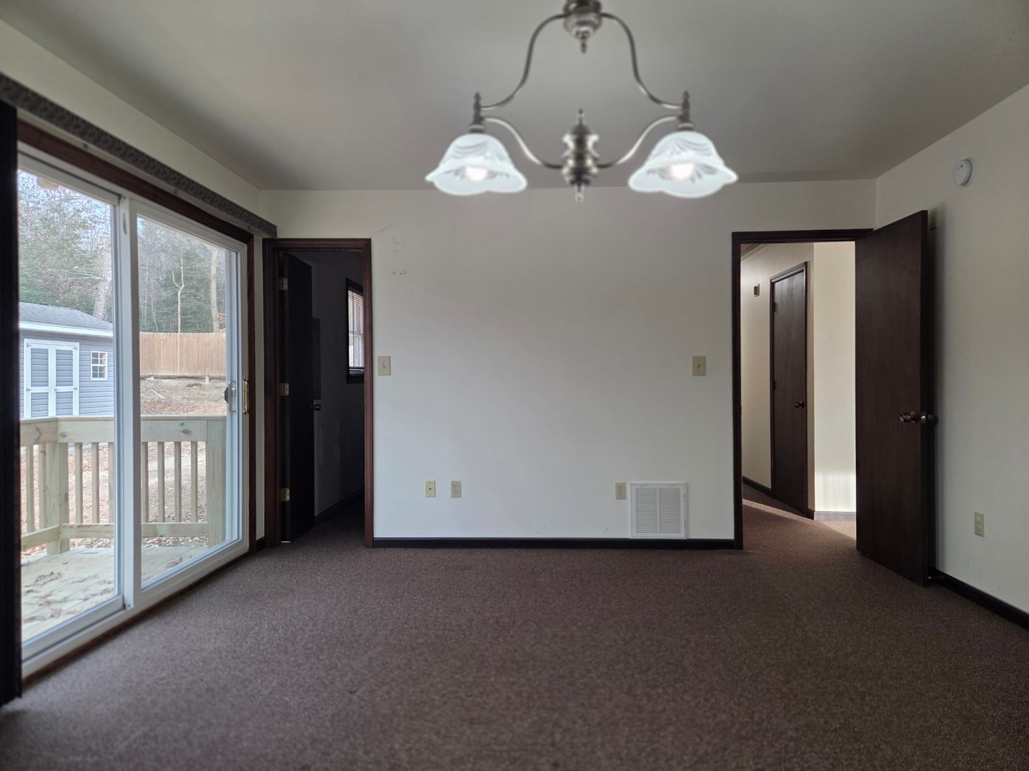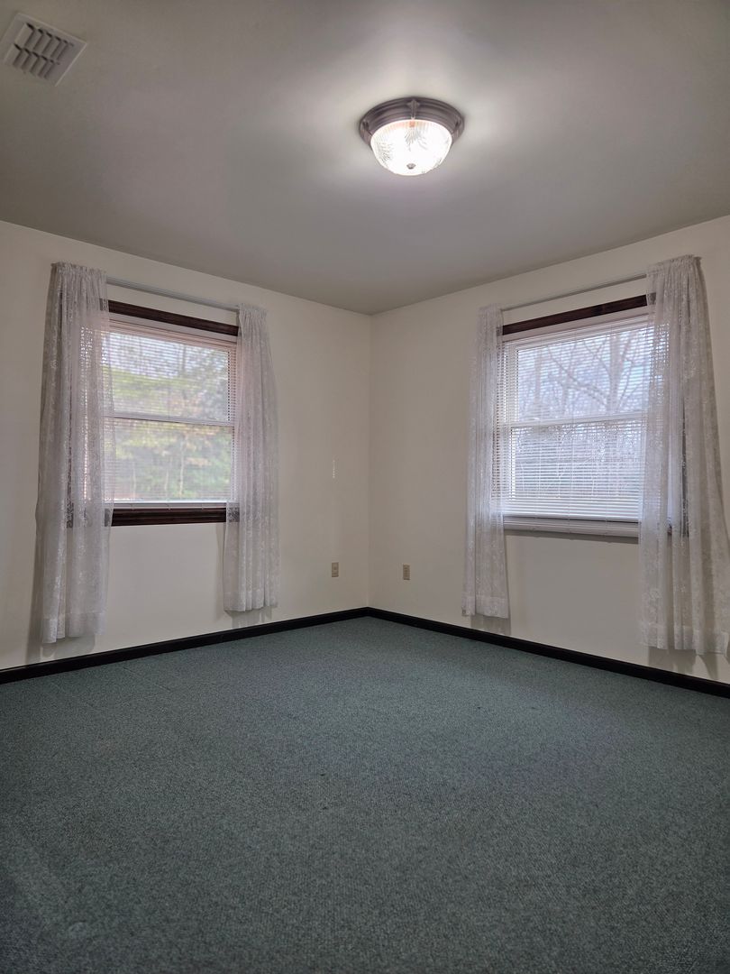 Quiet country rancher on large, secluded lot right at Route 1 and 288. Home features include vinyl siding and replacement windows, large open living room and dining area, large walk-in primary closet, detached storage, private rear deck.